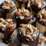 - Dip and Garnish: Using a fork, dip each frozen banana bite into the melted chocolate to coat. Sprinkle with chopped almonds and a pinch of sea salt while chocolate is still wet.