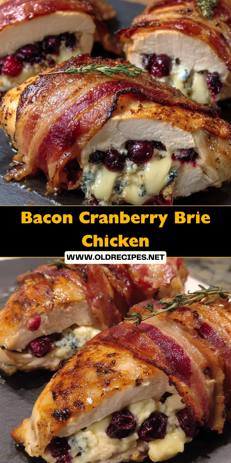Bacon Cranberry Brie Chicken is a delicious and easy-to-make dish featuring tender chicken breasts stuffed with creamy brie cheese and tangy cranberry sauce, all wrapped in crispy bacon.