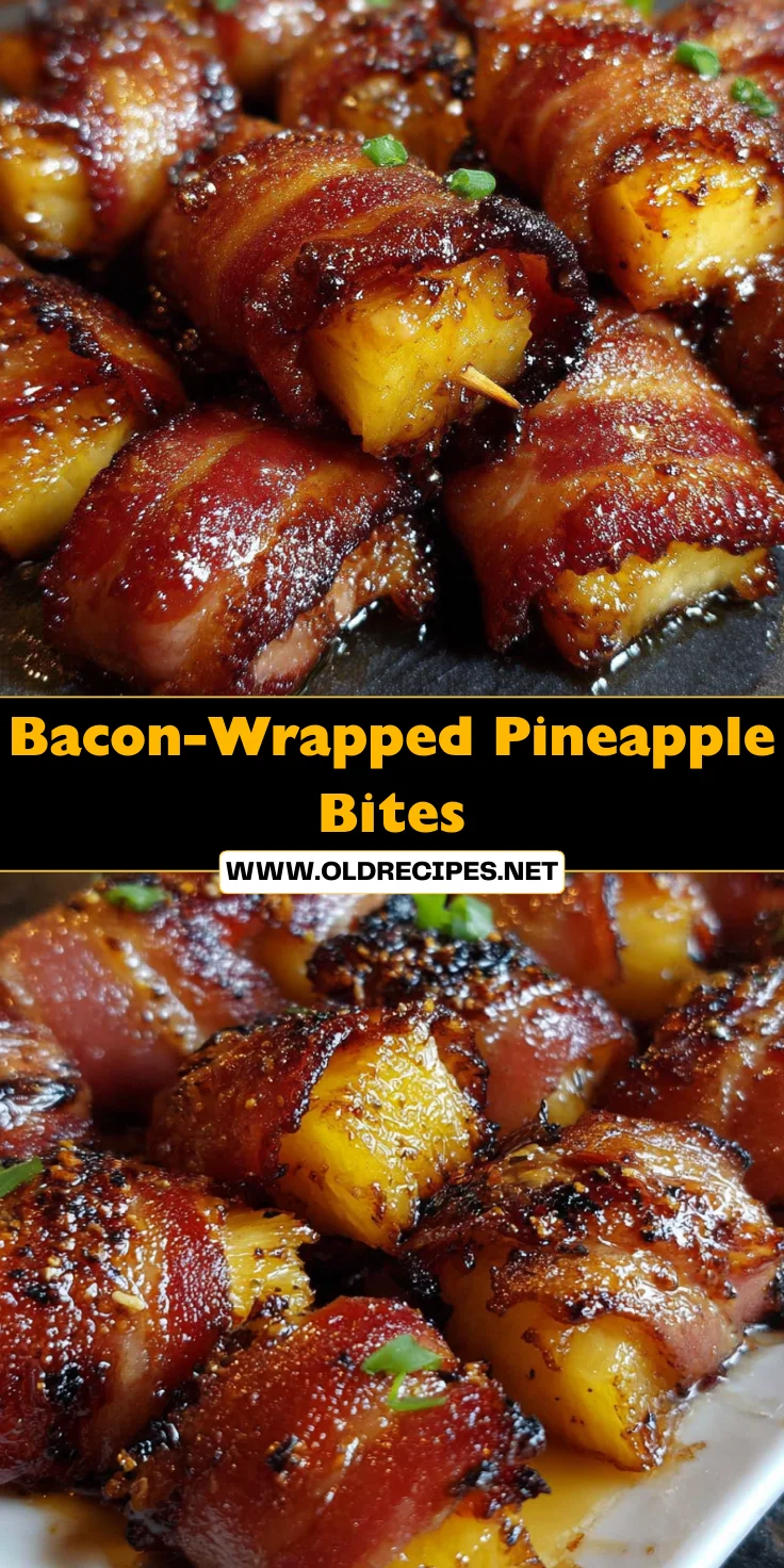 Bacon-Wrapped Pineapple Bites are a delicious combination of sweet and savory flavors, featuring juicy pineapple wrapped in crispy bacon.