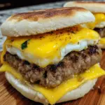 Now, let’s give those English muffins a little love! While your patties are sizzling, grab your melted butter and spread a nice layer on each muffin half. This will help them get that crispy, golden texture that complements the sandwiches perfectly. If you’re feeling adventurous, drizzle a touch of maple syrup on top for an unexpected sweet surprise. Yum!