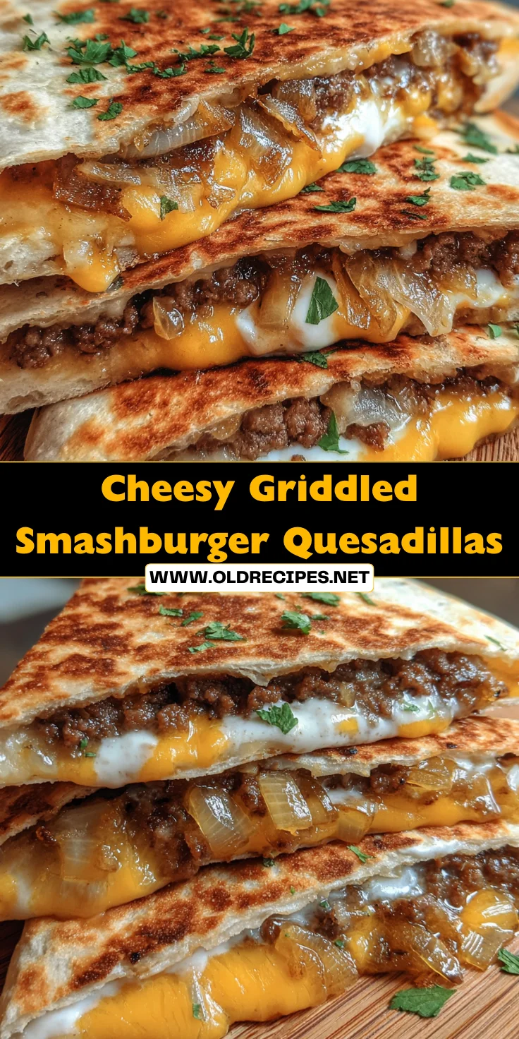 Cheesy Griddled Smashburger Quesadillas are a delightful fusion of classic quesadillas and smashburger patties, featuring melted cheese and flavorful toppings.
