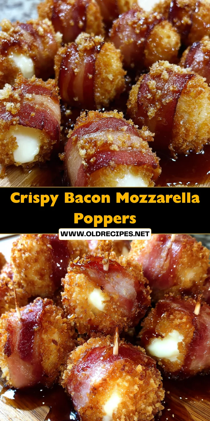 Making Crispy Bacon Mozzarella Poppers is more than just a recipe; it’s a delightful experience that brings smiles to faces and aroma to kitchens. Whether you’re hosting a gathering or simply enjoying a cozy night in, these poppers are a beacon of flavor and warmth. The blend of creamy mozzarella, salty bacon, and sweet maple glaze creates a harmonious bite that’s hard to resist. Each popper is a chance to pause, gather loved ones, and enjoy simple yet exquisite flavors. I hope this whimsical dish adds joy to your culinary adventures, inspiring cherished moments with every bite!