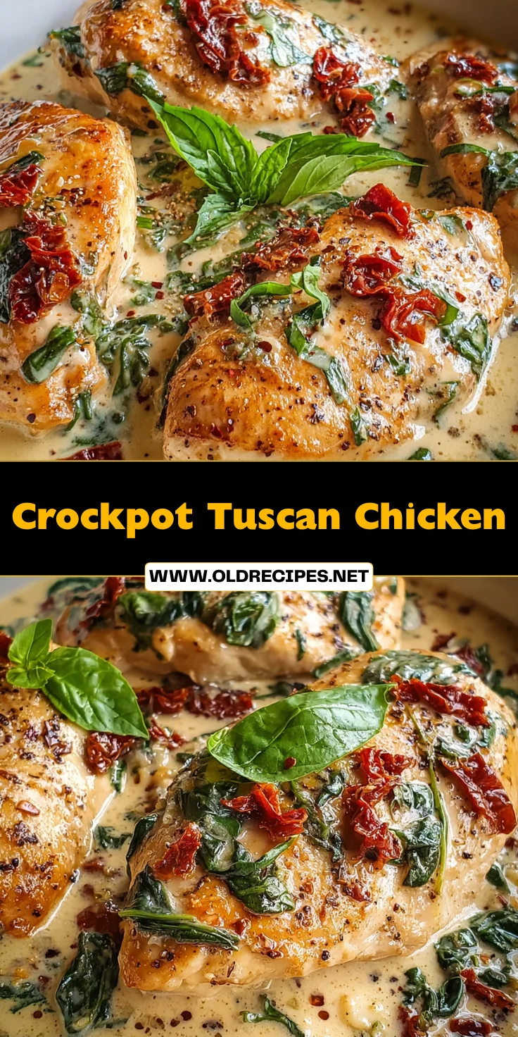 A creamy and delicious Crockpot Tuscan Chicken recipe, perfect for a comforting meal.