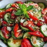 A refreshing and vibrant salad featuring crisp cucumber, sweet strawberries, and fragrant mint, perfect for warm weather.