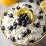 Time to add the fun parts! Toss in the fresh blueberries and mini marshmallows. Gently fold everything together until the blueberries and marshmallows are coated in the creamy lemon goodness. Just a quick note: be careful not to squish the blueberries too much. We want those beautiful little gems intact!