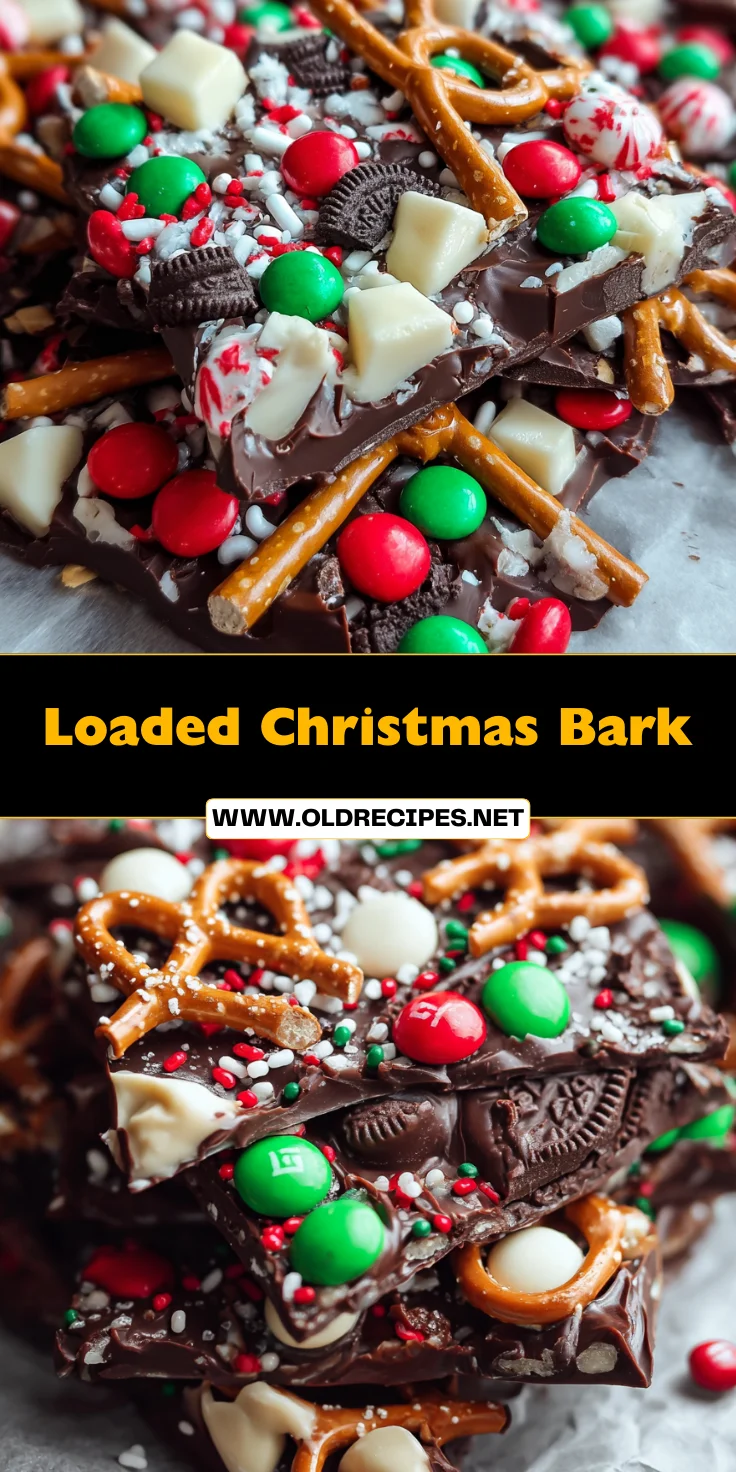Loaded Christmas Bark is a festive treat combining chocolate and holiday-themed ingredients for a delightful snack.