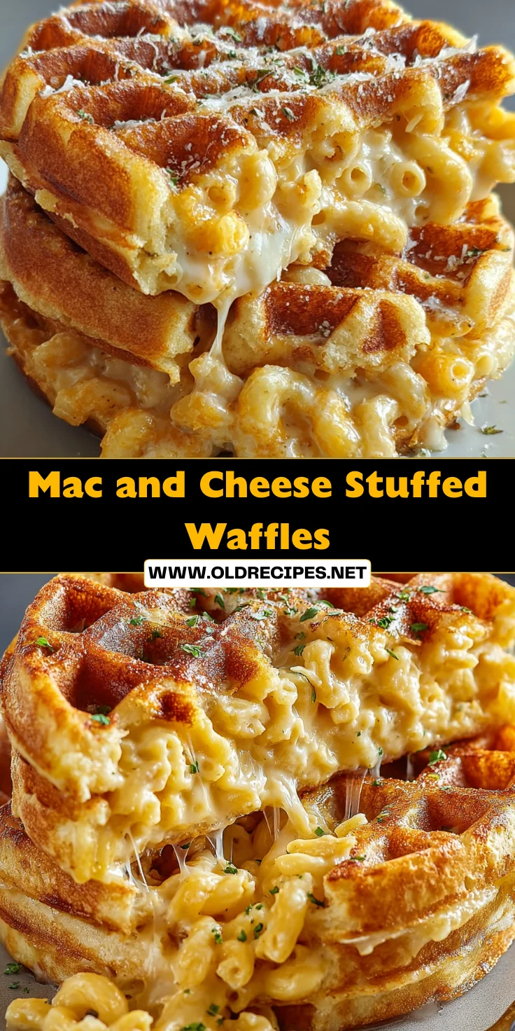 Deliciously crispy waffles stuffed with creamy mac and cheese, perfect for a unique meal or snack.