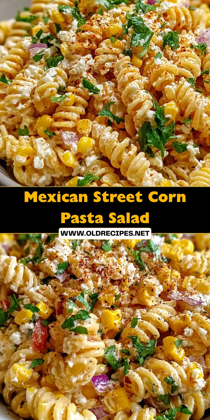 A refreshing and flavorful pasta salad inspired by Mexican street corn, combining rotini pasta, charred corn, and a creamy dressing.
