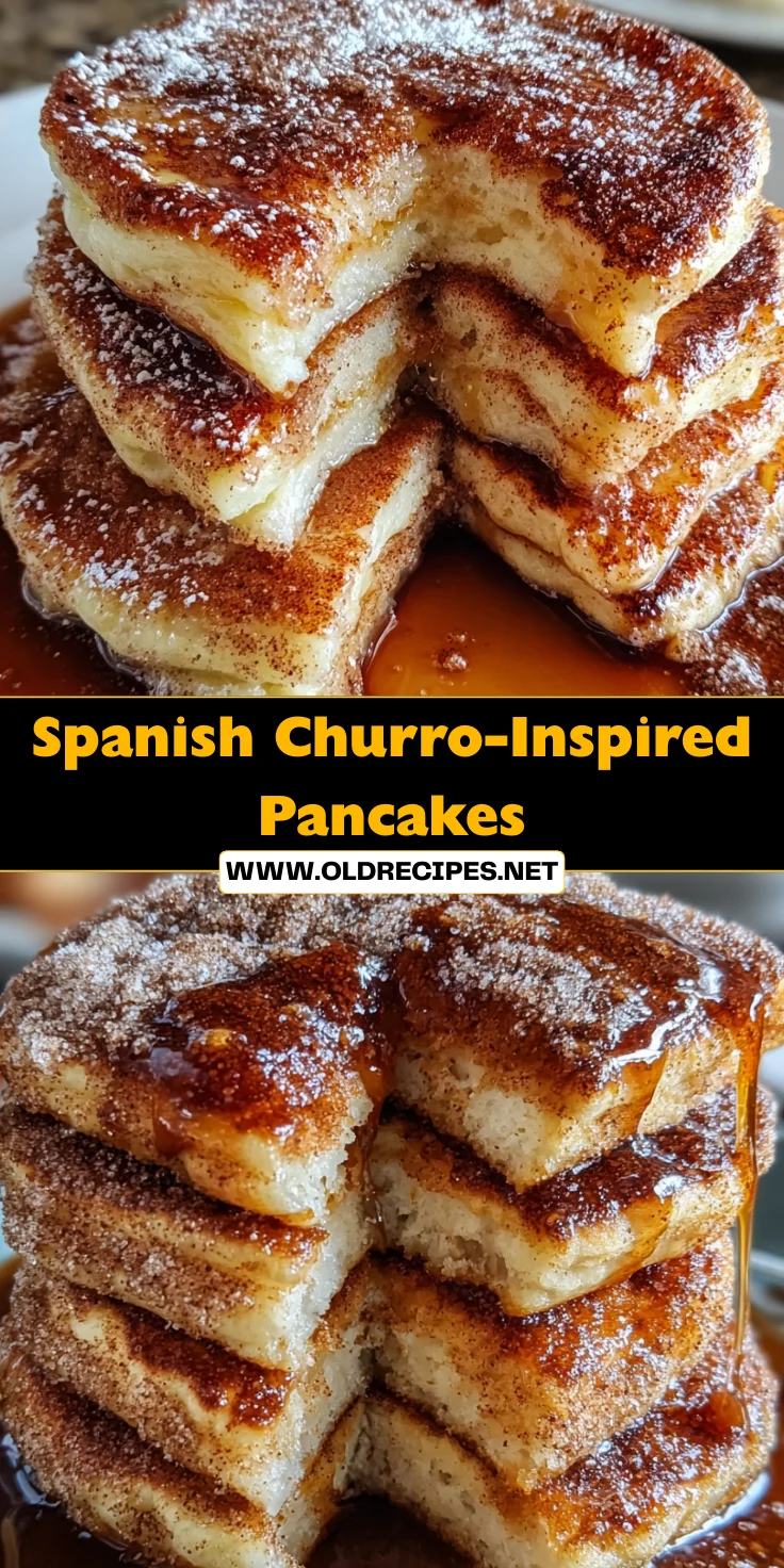 Your Spanish Churro-Inspired Pancakes deserve a beautiful presentation! Stack them high on a lovely plate and, if you’re feeling fancy, add an extra sprinkle of cinnamon sugar on the top. You can garnish with fresh fruit or even a drizzle of warm chocolate sauce for a decadent touch. Serve immediately while they’re warm and fluffy. Watch as your family gathers around, ready to dive into this delicious breakfast treat. With every bite, they’ll appreciate the love you put into making this dish. Enjoy each moment like it’s a joyful fiesta right in your own home!