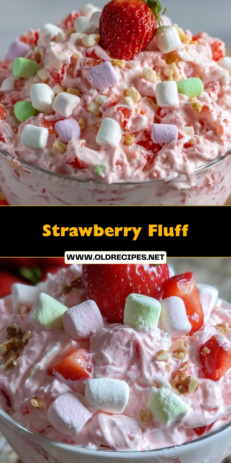 Strawberry Fluff is a delightful summer dessert that combines strawberries, creamy Cool Whip, and crunchy pecans for a refreshing dish perfect for any occasion.