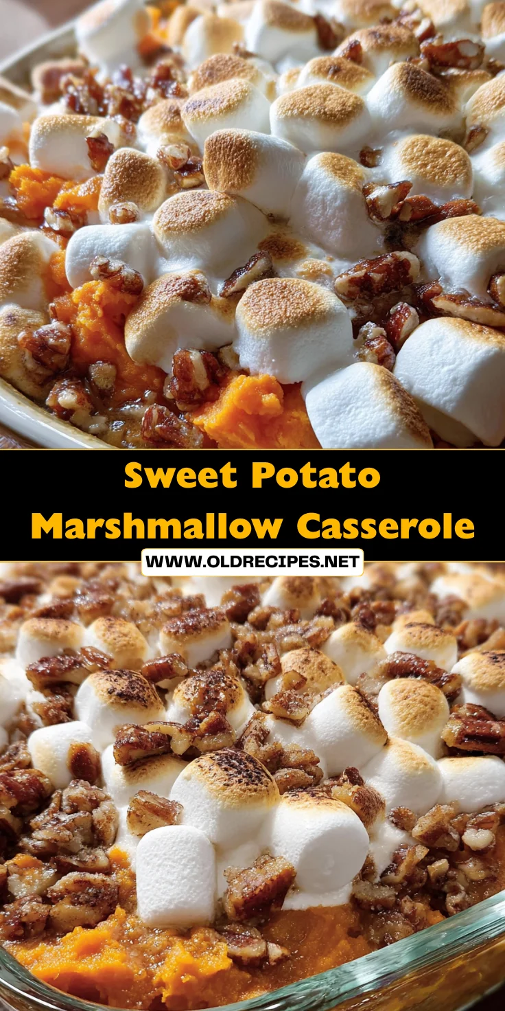 A delicious Sweet Potato Marshmallow Casserole that combines sweet potatoes, pecans, and mini marshmallows for a delightful dessert.